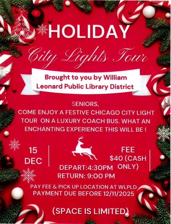 PAY FEE AND PICK UP IS AT THE WILLIAMS LEONARD PUBLIC LIBRARY